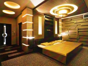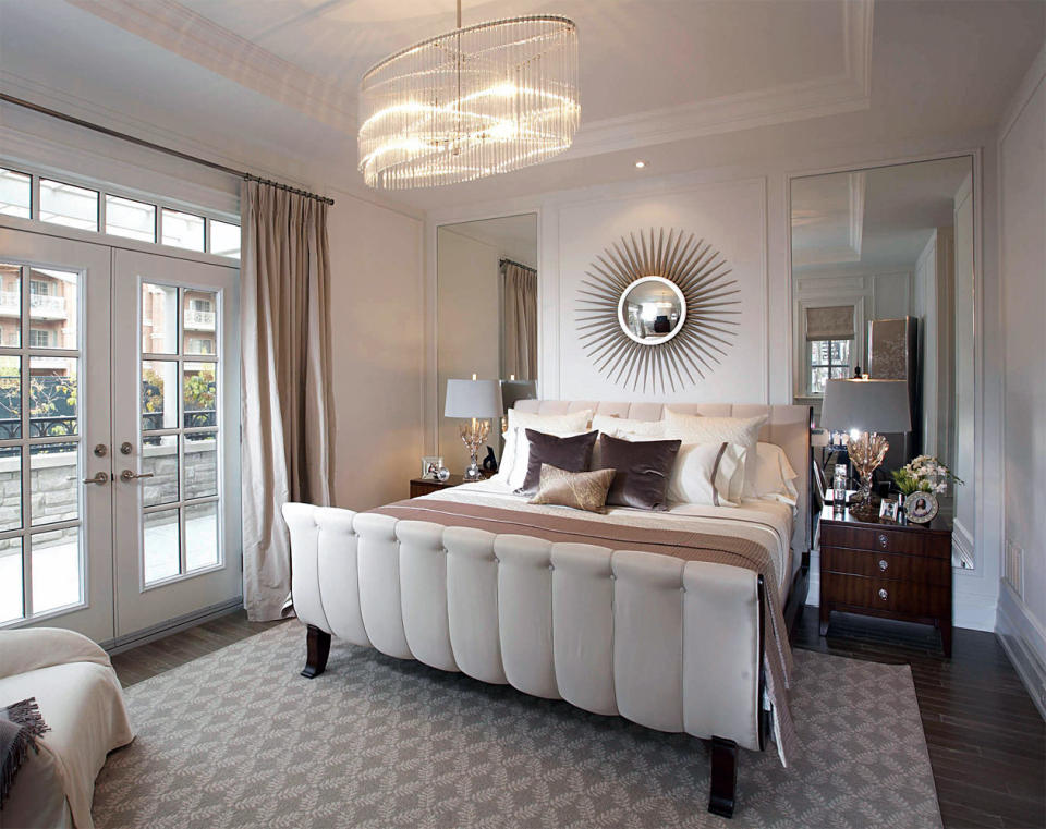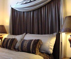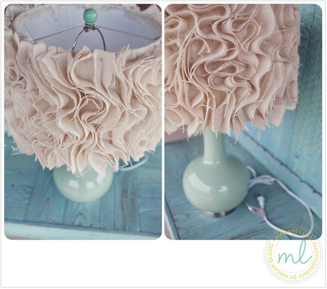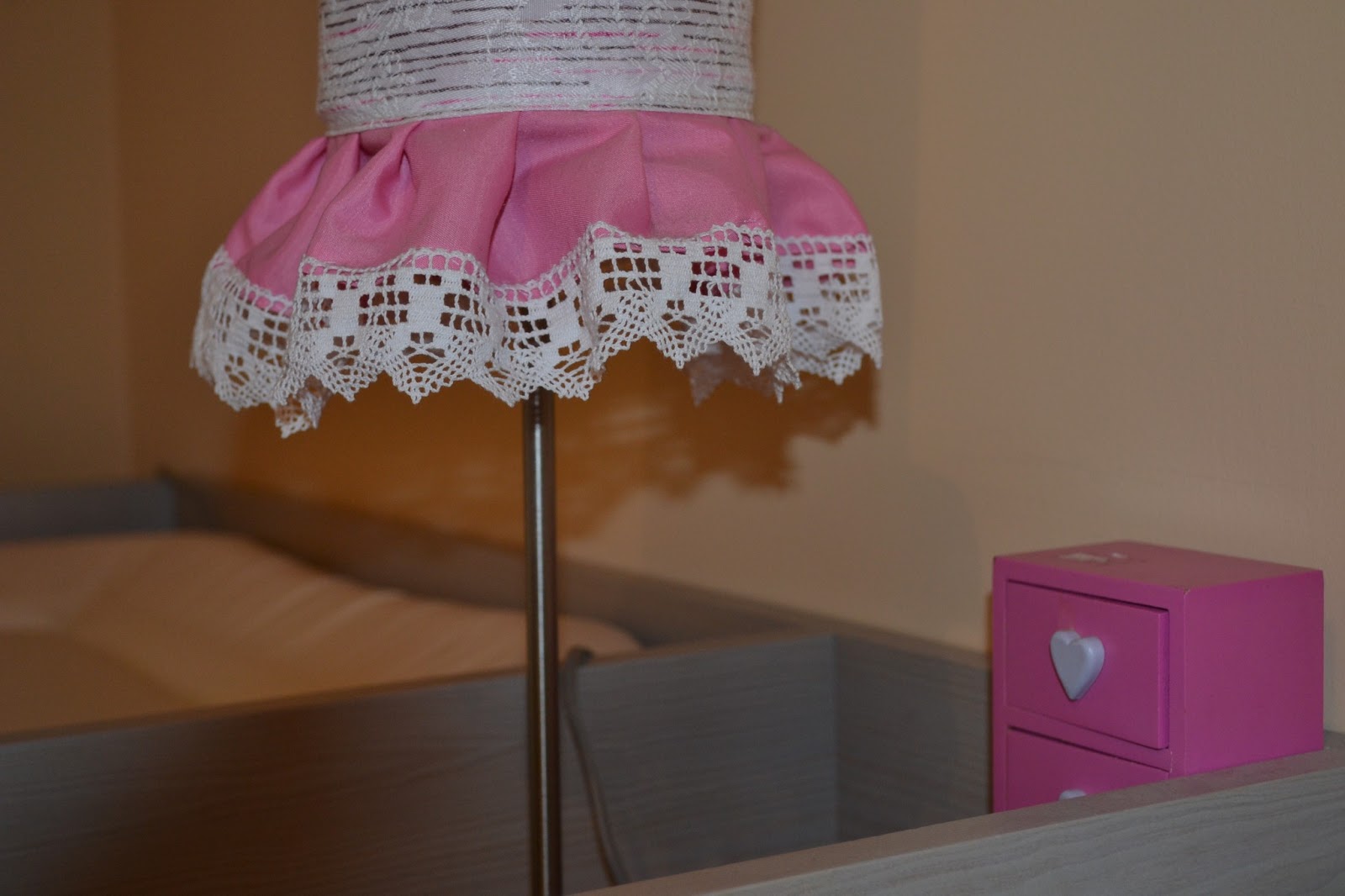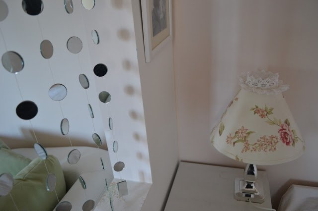Ugyanebből az anyagból készült az ágyszoknya, párna és a lámpák búrája is.