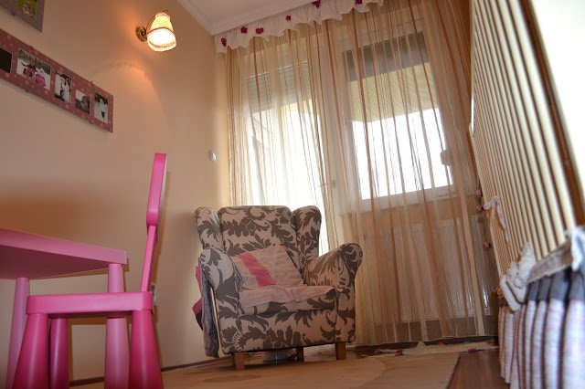 Azt biztosan tudtam, hogy konvencióktól mentes, letisztult szoba lesz, ahol alapesetben nyugodtságot, harmóniát sugalló szín jelenik meg. 5-6 színvariáció villant be, mígnem rátaláltam erre a fotelre, ami végérvényesen eldöntötte a szürke-rózsasín-krém lányszoba tervezését.