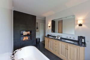 A könnyen tisztíthatóság miatt általában kőburkolatot választunk, de lehet fapadló, vagy az újra divatba jött vinyl is..