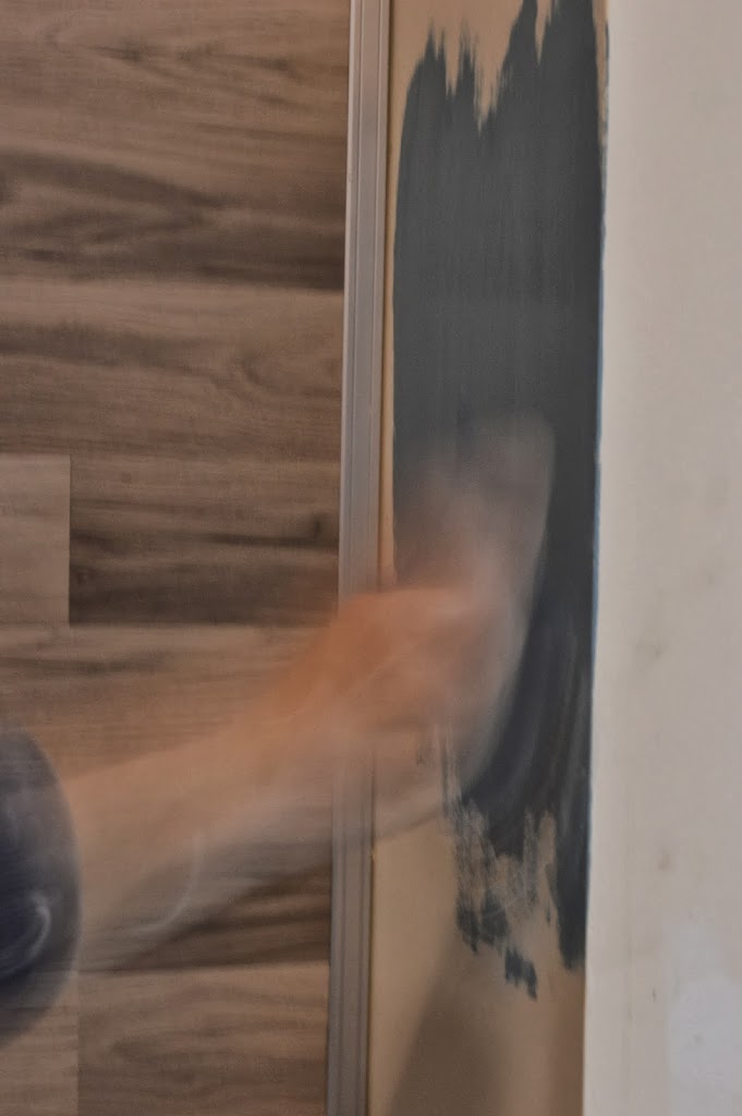 Az alapszín és a kiemelőszín kikeverése. Itt most jobbnak láttam ha nem előre kikevert színkód alapján választok, a tapéta kékje mellett bekerül majd egy textil is és egy kreatív logófestés a falra, és szerettem volna a kettő közötti színt kihozni, így a zöld-kék játéka fontos volt. Az alapszín esetében pedig kérés volt, hogy ne legyen “semmilyen” 🙂 így rózsaszínes, púderes lett, mint a világos tapéta.