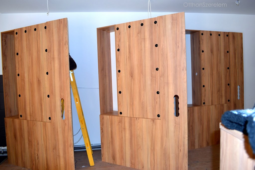 Arról munkafolyamat képet nem tudok mutatni, de keretek, kötelek is lesznek még a történetben, és fehérre antikolt fafelületek..