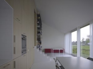 A konyha is letisztult, csak annyi funkció és részlet látható,amennyi nagyon muszáj.