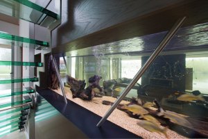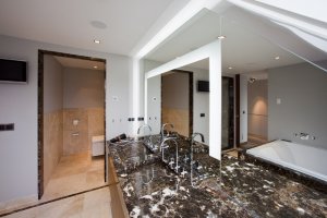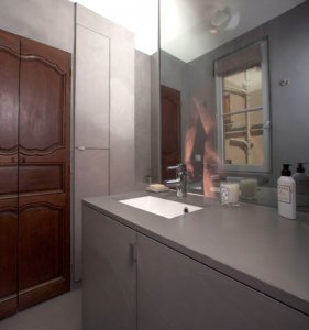 A kétoldalú tükröt ebben a térben is bevetette a tervező.