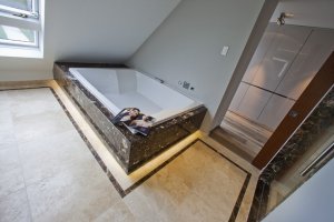 Általában a fürdőszobára a kérés: “valamilyen barnás, visszafogott színnel szeretnénk, esetleg egy-egy díszcsík, vagy mozaik”