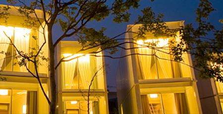 Első látásra véletlenszerű a házak elrendezése, valójában azonban a lehető legnagyobb panoráma tárul így a vendégek elé szobájukban.
